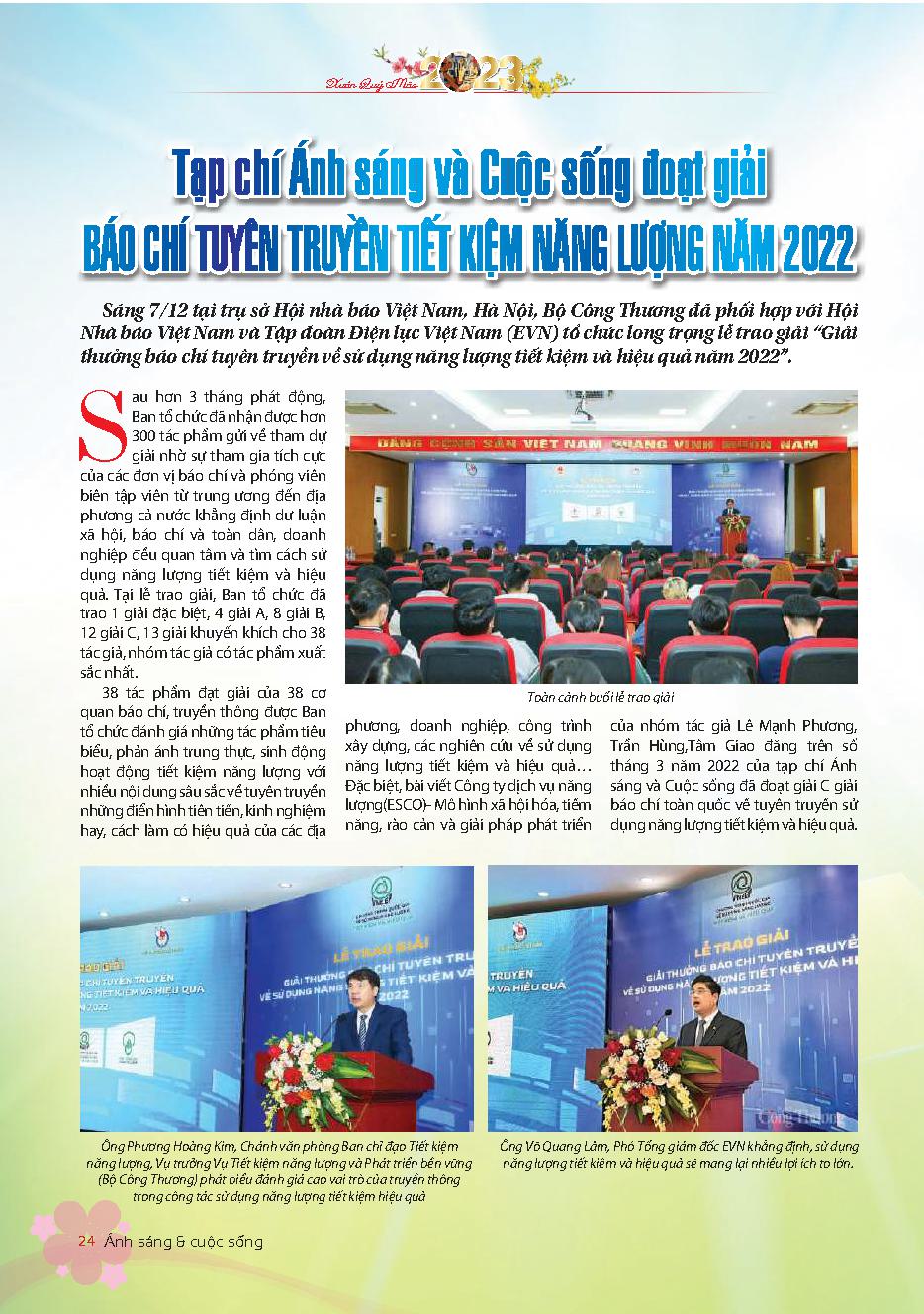 Tạp chí Ánh sáng và Cuộc sống đoạt giải Báo chí tuyên truyền tiết kiệm năng lượng năm 2022