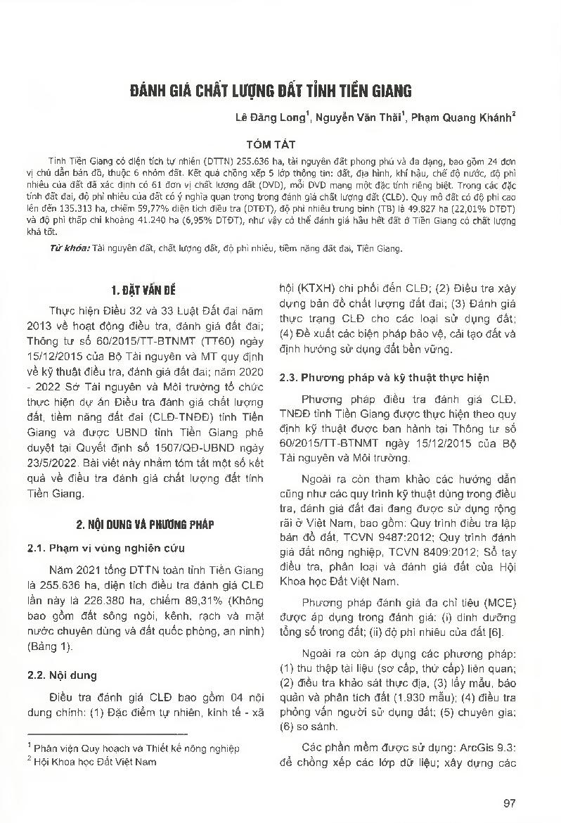 Đánh giá chất lượng đất tỉnh Tiền Giang = Evaluation of soil quality in Tien Giang province