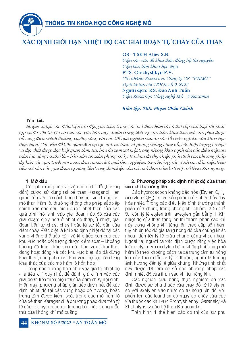 Xác định giới hạn nhiệt độ các giai đoạn tự cháy của than = Determination of temperature limits of coal self-ignition stages