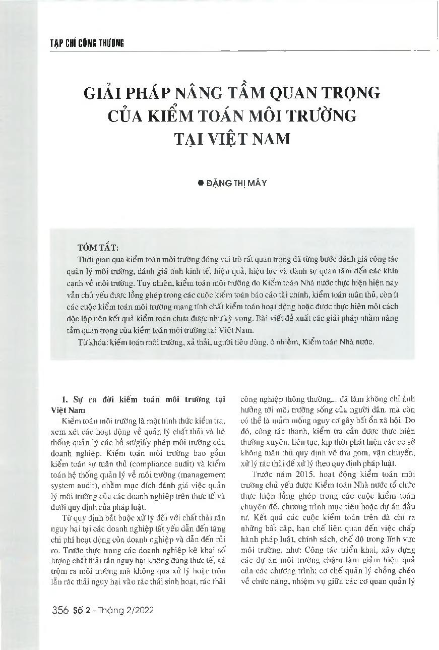 Giải pháp nâng tầm quan trọng của kiểm toán môi trường tại Việt Nam = Solutions to improve the role of environmental audit in Vietnam