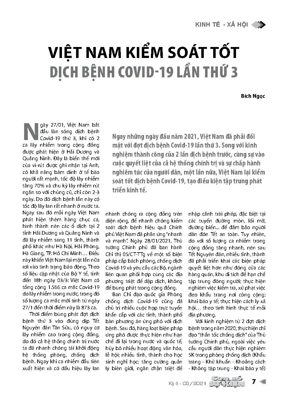 Việt Nam kiểm soát tốt dịch bệnh covid-19 lần thứ 3