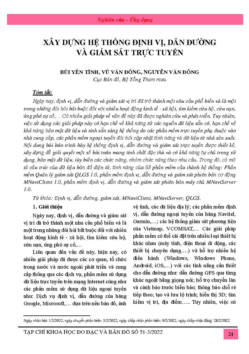 Xây dựng hệ thống định vị, dẫn đường và giám sát trực tuyến = Building online positioning, navigation and monitoring system