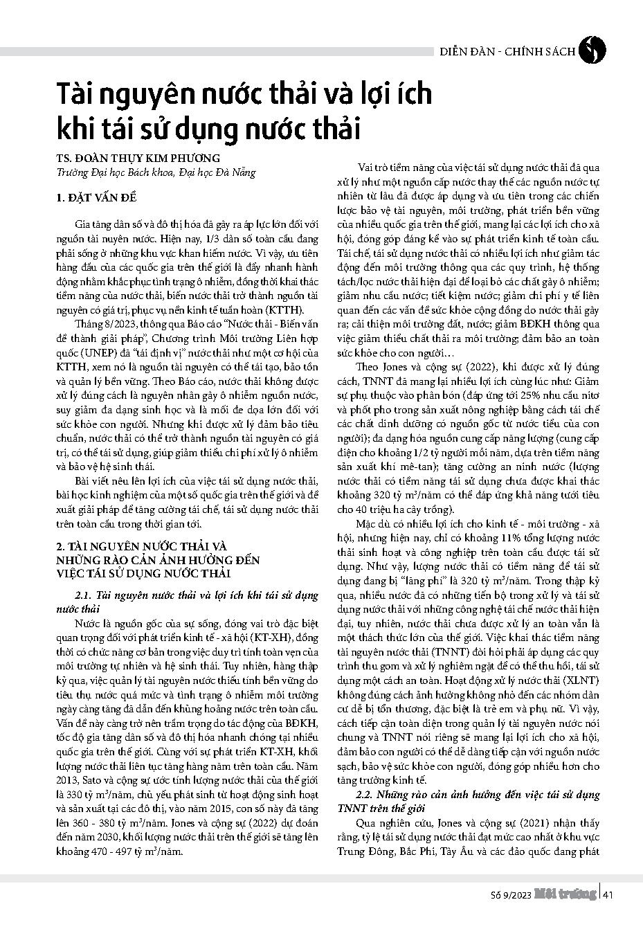 Tài nguyên nước thải và lợi ích khi tái sử dụng nước thải