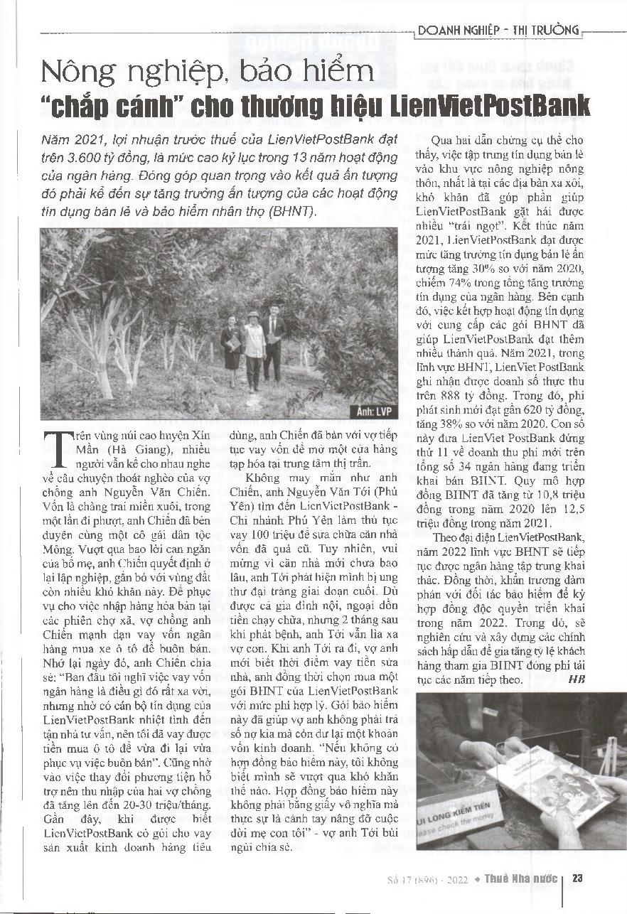 Nông nghiệp, bảo hiểm “chắp cánh” cho thương hiệu LienVietPostBank = Agriculture and insurance "bring wings" for the LienVietPostBank brand