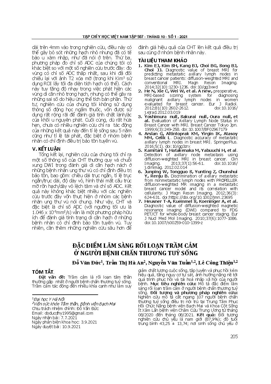 Đặc điểm lâm sàng rối loạn trầm cảm ở người bệnh chấn thương tuỷ sống = Clinical features of depression in patient with spinal cord injury