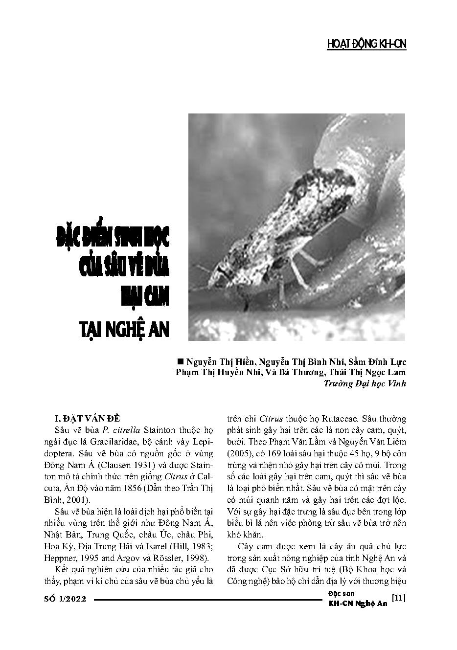 Đặc điểm sinh học của sâu vẽ bùa hại cam tại Nghệ An