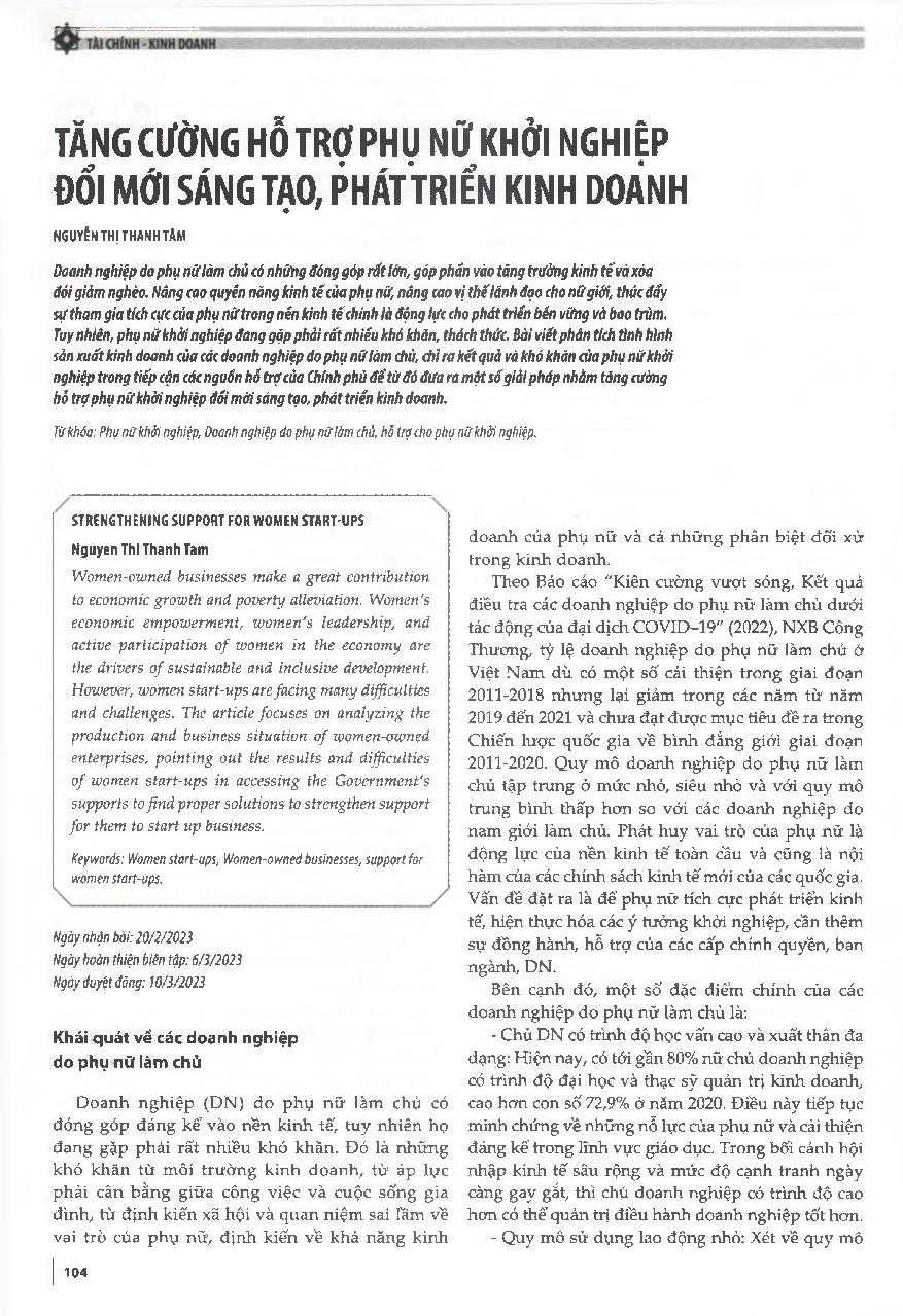 Tăng cường hỗ trợ phụ nữ khởi nghiệp đổi mới sáng tạo, phát triển kinh doanh = Strengthening support for women start-ups