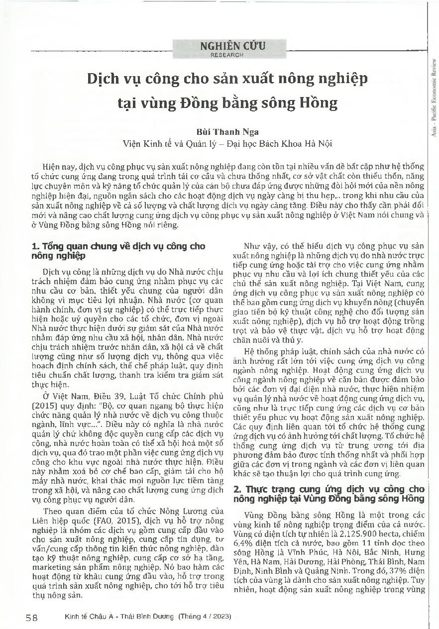 Dịch vụ công cho sản xuất nông nghiệp tại vùng Đồng bằng sông Hồng