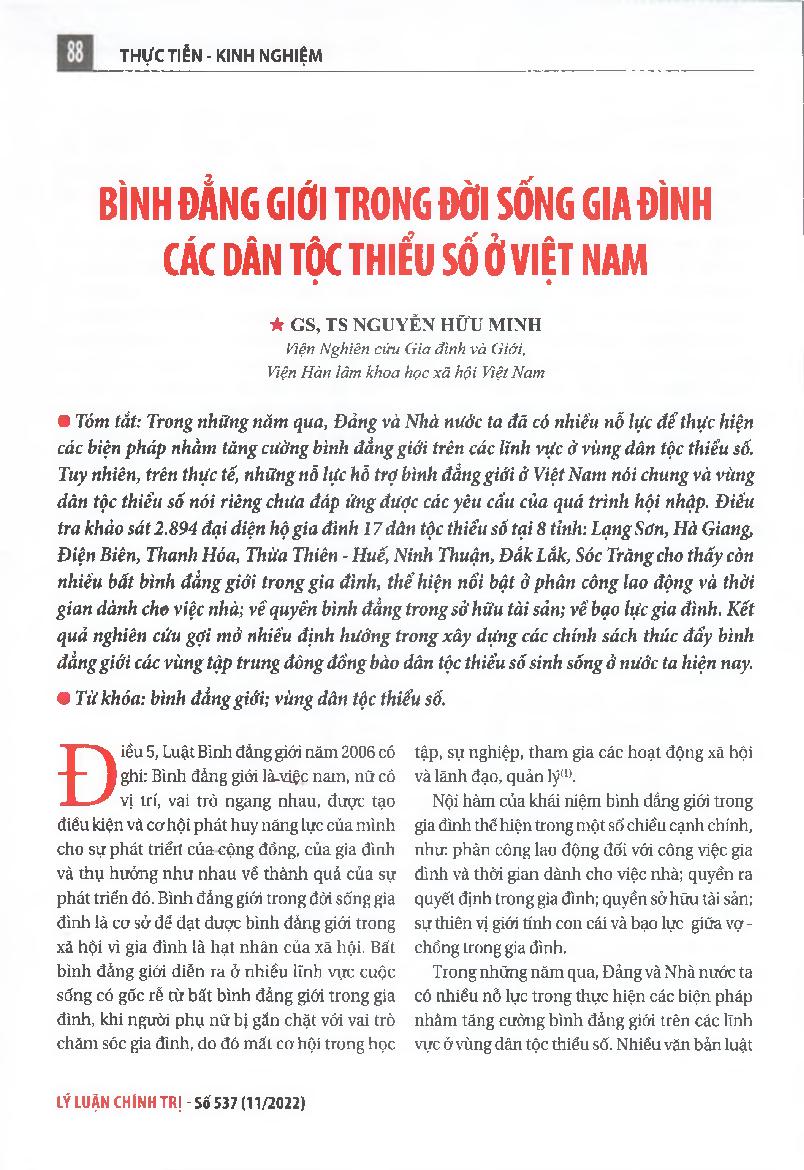 Bình đẳng giới trong đời sống gia đình các dân tộc thiểu số ở Việt Nam = Gender equality in families of ethnic minorities groups in Vietnam