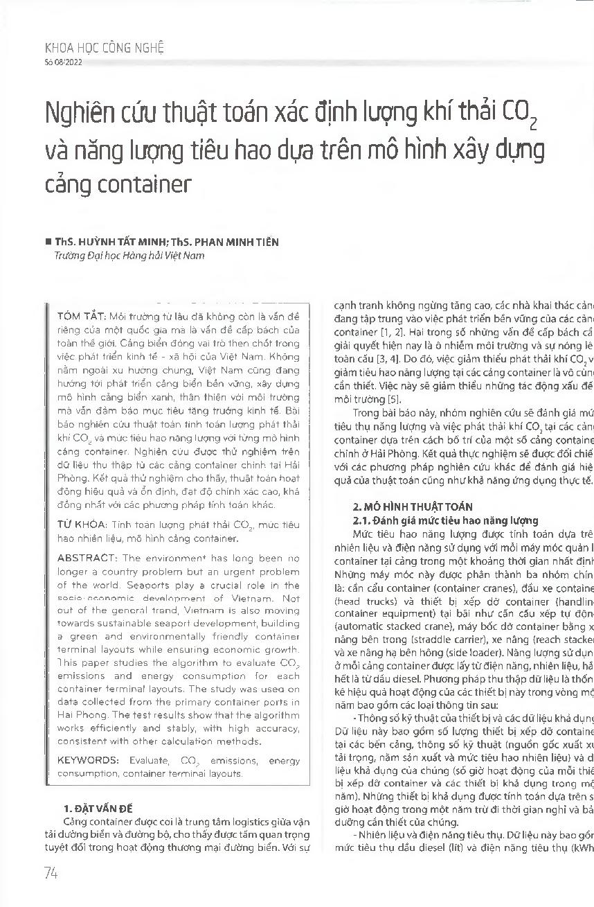 Nghiên cứu thuật toán xác định lượng khí thải CO2 và năng lượng tiêu hao dựa trên mô hình xây dựng cảng container = Studying algorithm to determine CO2 emission and energy consumption based on the container port construction model
