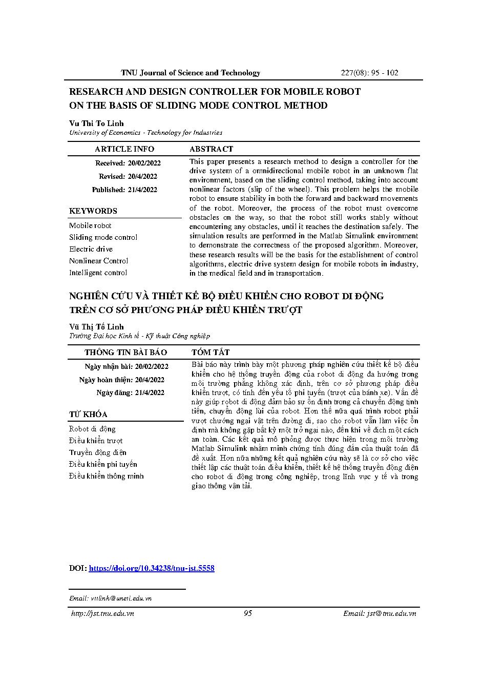 Nghiên cứu và thiết kế bộ điều khiển cho robot di động trên cơ sở phương pháp điều khiển trượt = Research and design controller for mobile robot on the basis of sliding mode control method