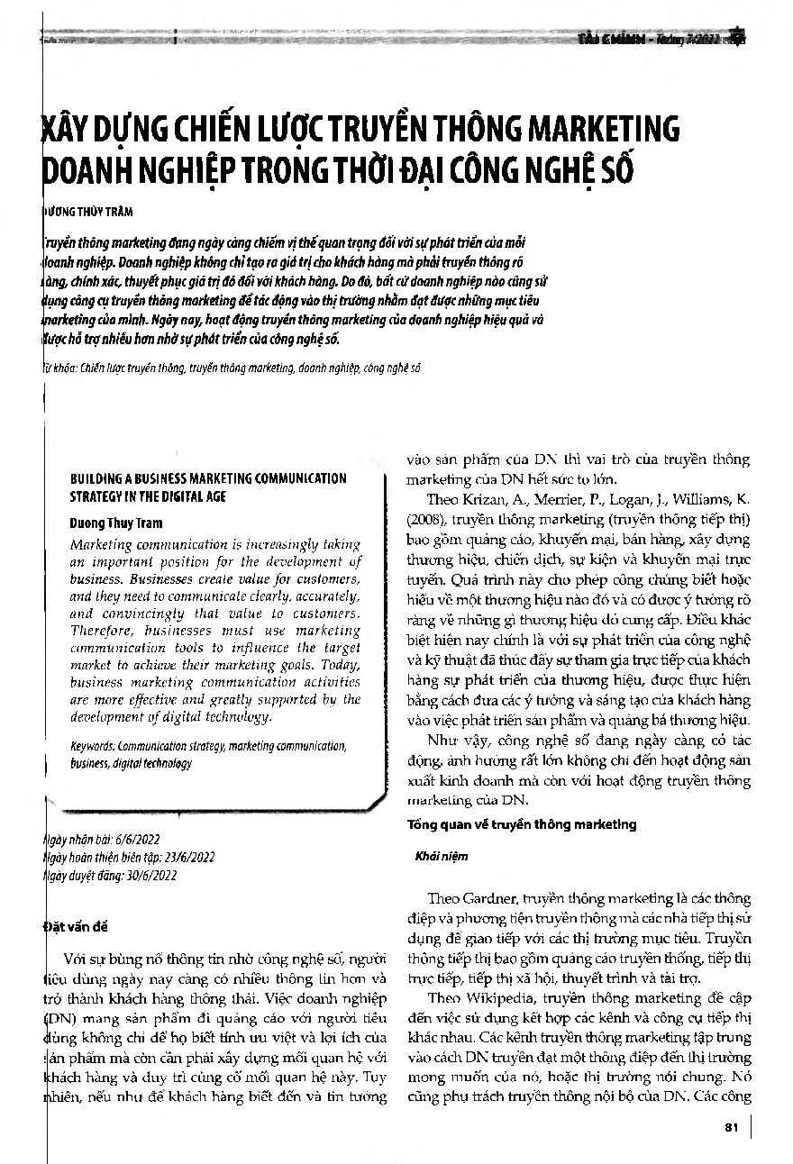 Xây dựng chiến lược truyền thông marketing doanh nghiệp trong thời đại công nghệ số = Building a business marketing communication strategy in the digital age
