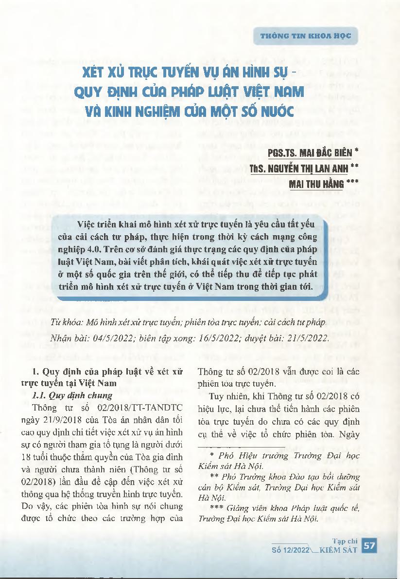 Xét xử trực tuyến vụ án hình sự - Quy định của pháp luật Việt Nam và kinh nghiệm của một số nước