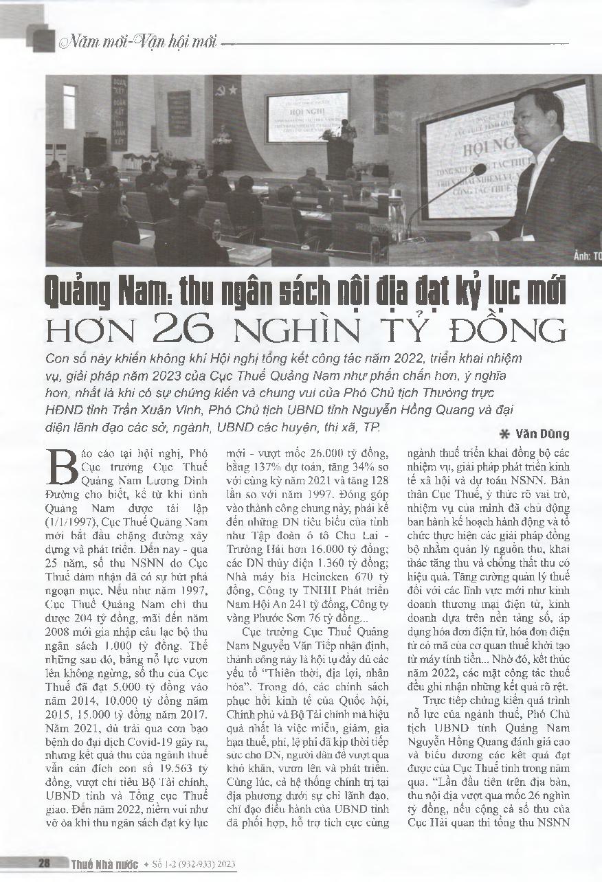 Quảng Nam: thu ngân sách nội địa đạt kỷ lục mới hơn 26 nghìn tỷ đồng
