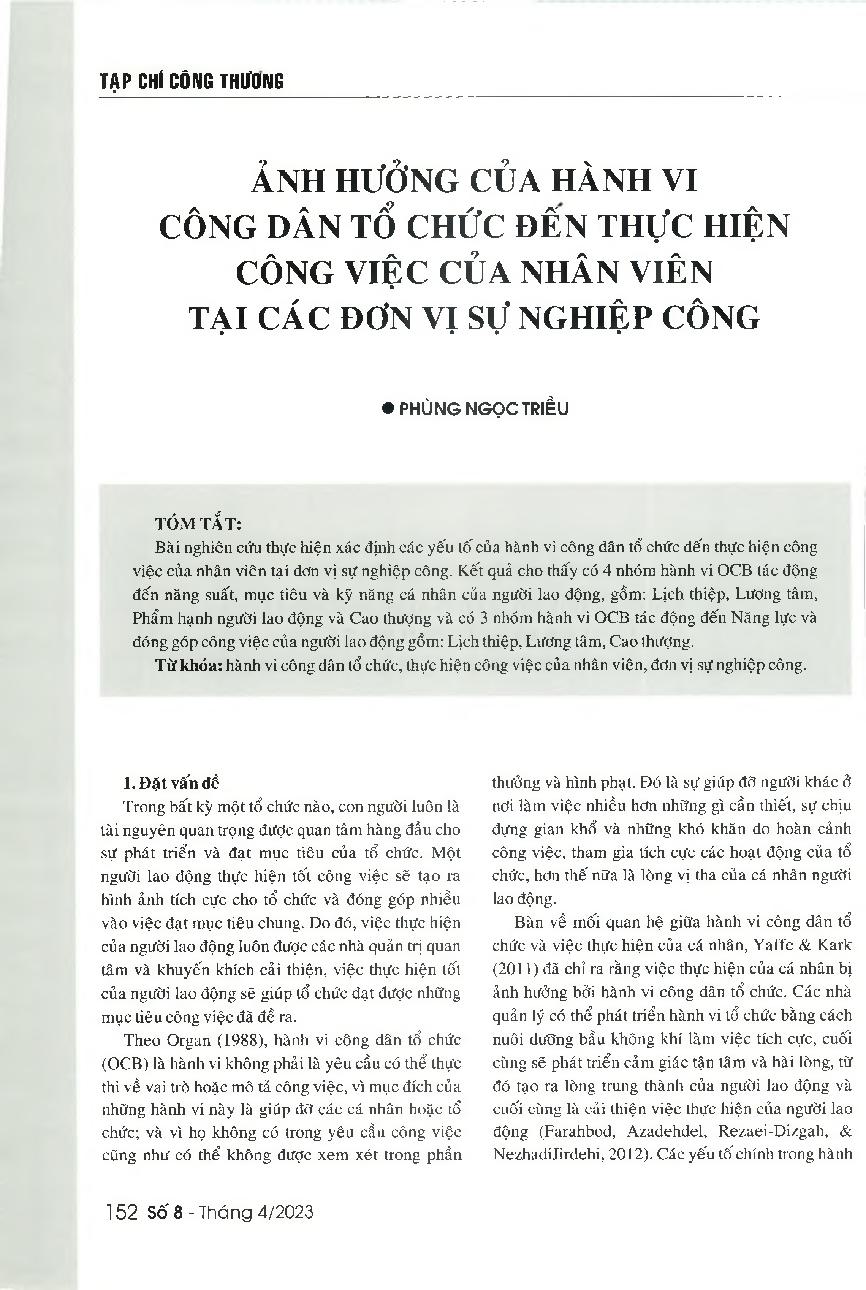 Ảnh hưởng của hành vi công dân tổ chức đến thực hiện công việc của nhân viên tại các đơn vị sự nghiệp công