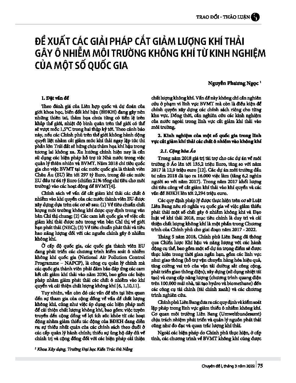 Đề xuất các giải pháp cắt giảm lượng khí thải gây ô nhiễm môi trường không khí từ kinh nghiệm của một số quốc gia