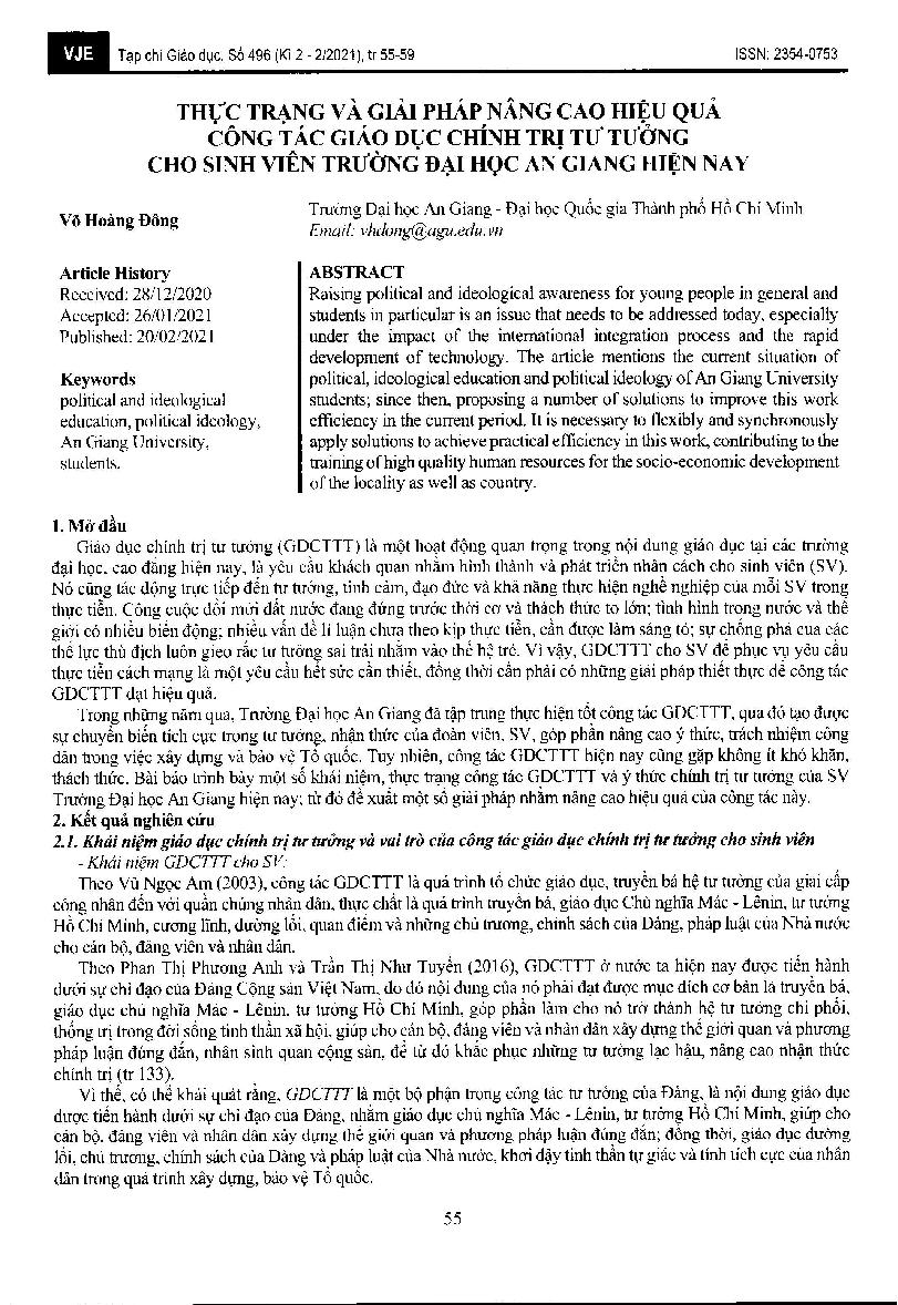 Thực trạng và giải pháp nâng cao hiệu quả công tác giáo dục chính trị tư tưởng cho sinh viên Trường Đại học An Giang hiện nay