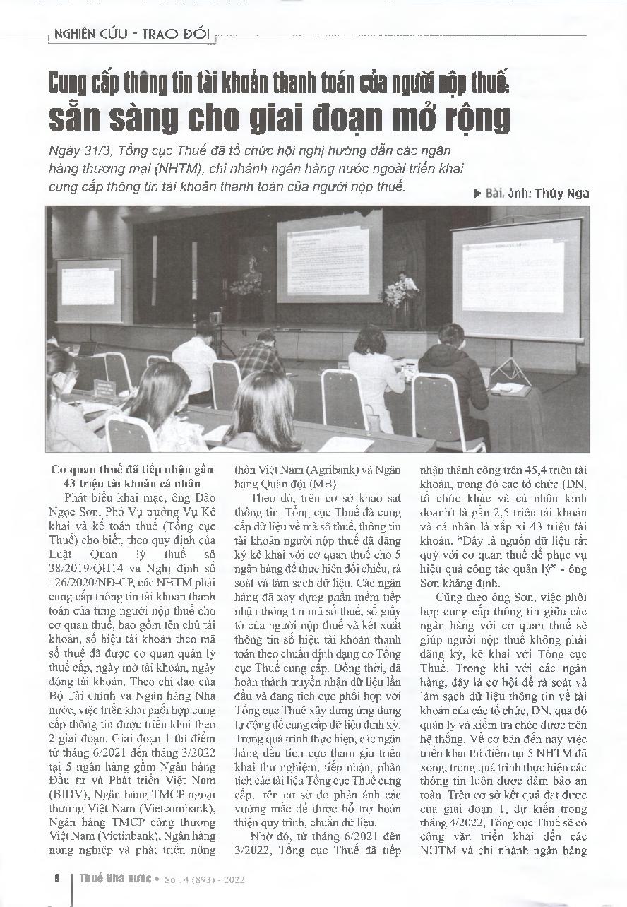 Cung cấp thông tin tài khoản thanh toán của người nộp thuế: sẵn sàng cho giai đoạn mở rộng = Provide taxpayer payment account information: ready for expansion phase