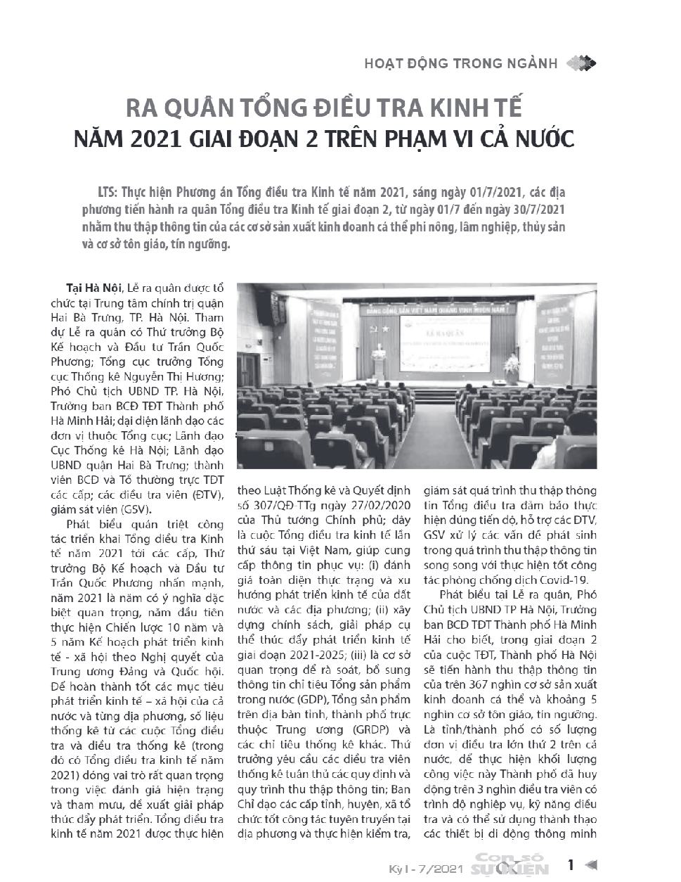 Ra quân tổng điểu tra kinh tế năm 2021 giai đoạn 2 trên phạm vi cả nước