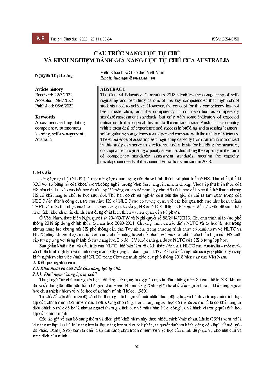 Cấu trúc năng lực tự chủ và kinh nghiệm đánh giá năng lực tự chủ của Australia = Autonomy capacity structure and experience of assessing autonomy capacity of Australia