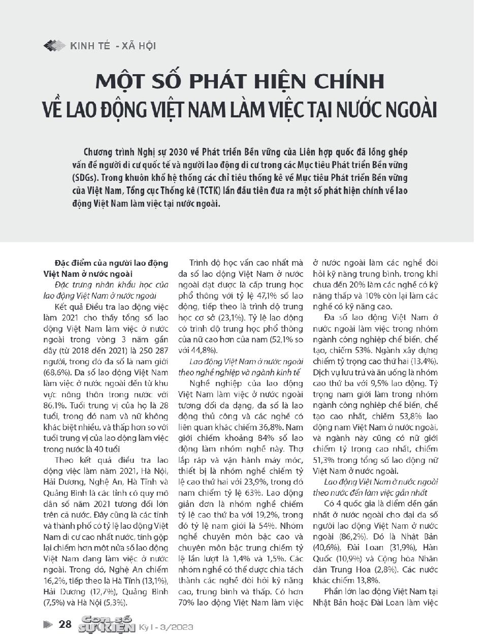 Một số phát hiện chính về lao động Việt Nam làm việc tại nước ngoài = Some key findings about Vietnamese workers working abroad