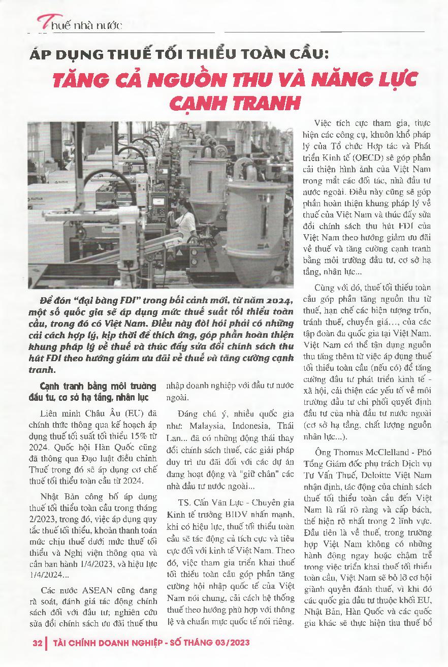 Áp dụng thuế tối thiểu toàn cầu: Tăng cả nguồn thu và năng lực cạnh tranh = Applying a global minimum tax: Increasing both revenue and competitiveness