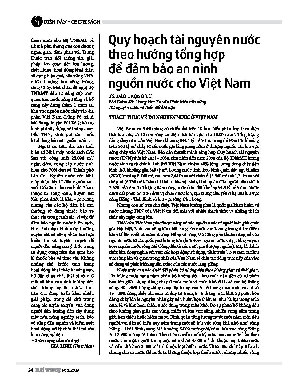 Quy hoạch tài nguyên nước theo hướng tổng hợp để đảm bảo an ninh nguồn nước cho Việt Nam