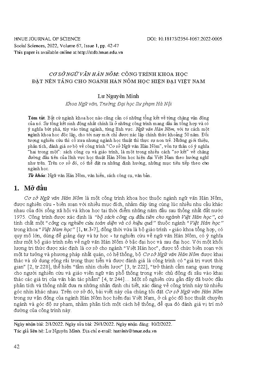 Cơ sở ngữ văn Hán nôm: Công trình khoa học đặt nền tảng cho ngành Hán nôm học hiện đại Việt Nam = Sino Nom philological foundation: The scientific works initiating the foundation for modern Sino Nom studies of Viet Nam