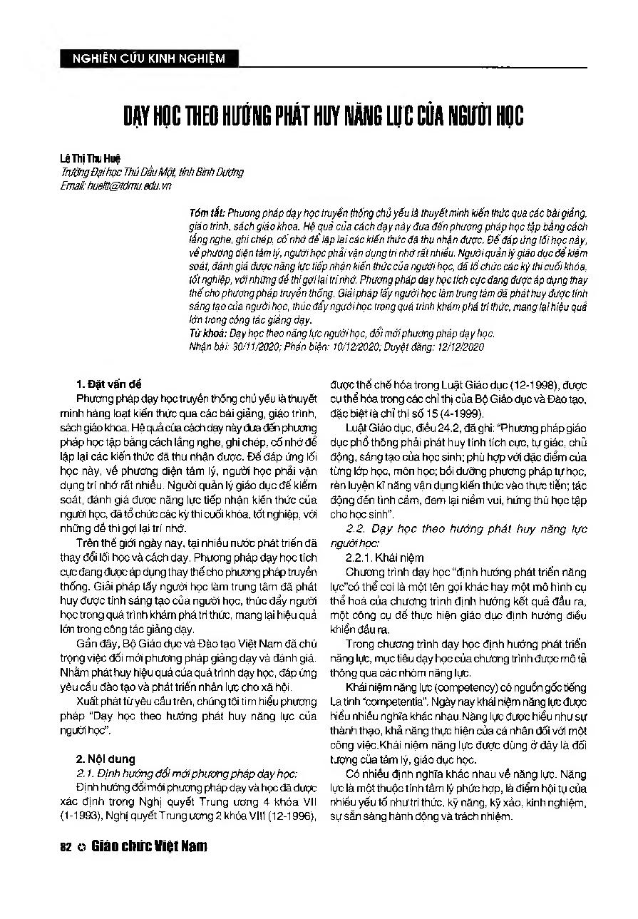 Dạy học theo hướng phát huy năng lực của ngươi học = Teaching in the direction of promoting the learners' intelligence