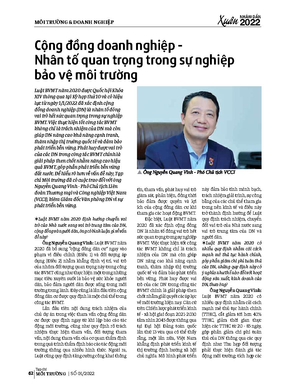 Cộng đồng doanh nghiệp - Nhân tố quan trọng trong sự nghiệp bảo vệ môi trường