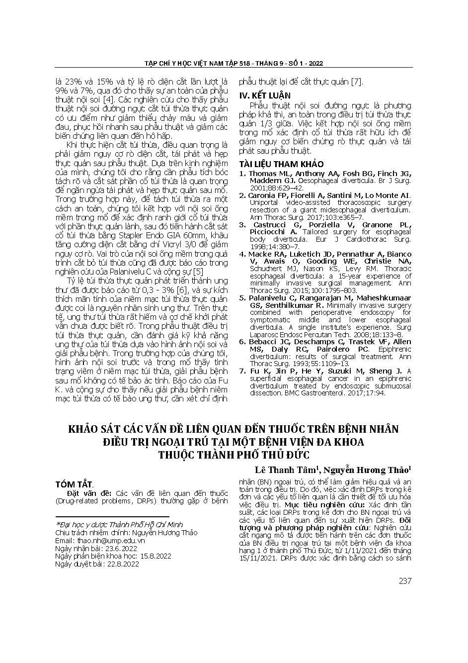 Khảo sát các vấn đề liên quan đến thuốc trên bệnh nhân điều trị ngoại trú tại một bệnh viện đa khoa thuộc thành phố Thủ Đức