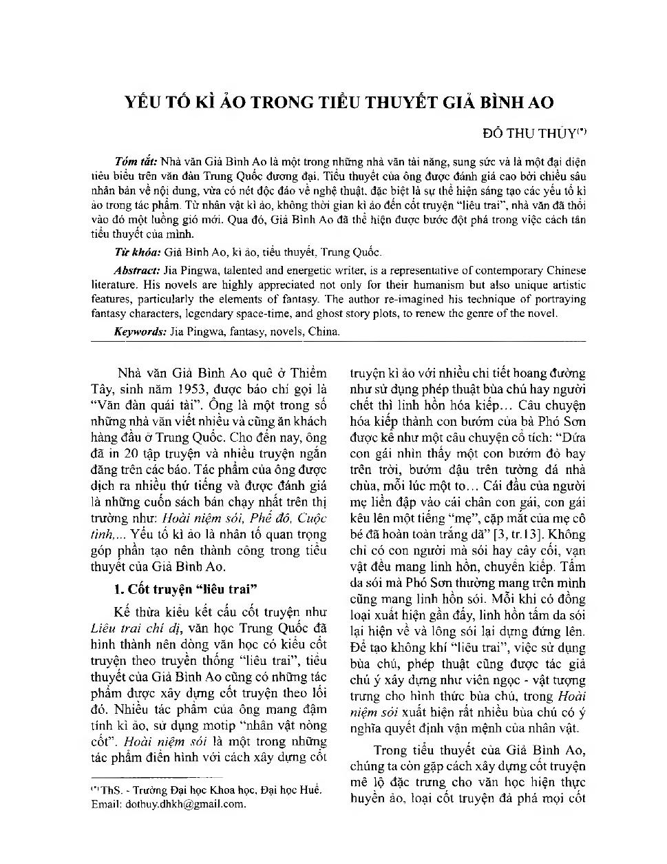 Yếu tố kì ảo trong tiểu thuyết Giả Bình Ao = Fantasy in Jia Pingwa’s novels