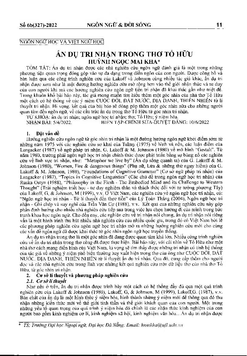 Ẩn dụ tri nhận trong thơ Tố Hữu = Conceptual metaphors in To Huu’s poems