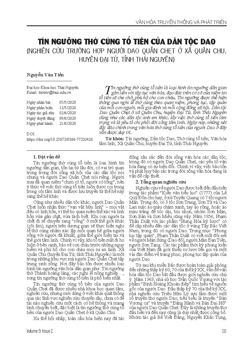GIẢI PHÁP BẢO TỒN, PHÁT HUY NGHỀ THỦ CÔNG TRUYỀN THỐNG ĐƯƠN ĐỆM HUYỆN TÂN PHƯỚC, TỈNH TIỀN GIANG DƯỚI GÓC NHÌN VĂN HÓA = SOLUTIONS TO PRESERVE AND PROMOTE THE TRADITIONAL WEAVING HANDICRAFT IN TAN PHUOC DISTRICT, TIEN GIANG PROVINCE FROM A CULTURAL PERSPECTIVE