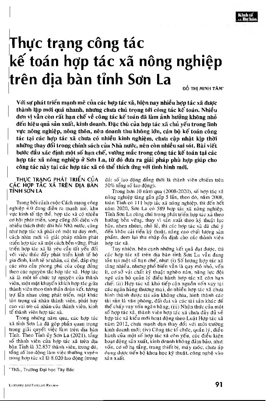 Thực trạng công tác kế toán hợp tác xã nông nghiệp trên địa bàn tỉnh Sơn La