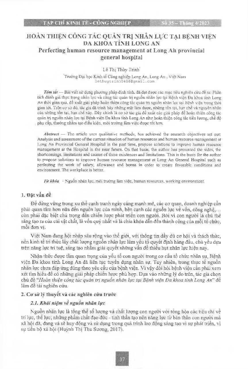 Hoàn thiện công tác quản trị nhân lực tại Bệnh viện Đa khoa tỉnh Long An = Perfecting human resource management at Long An provincial