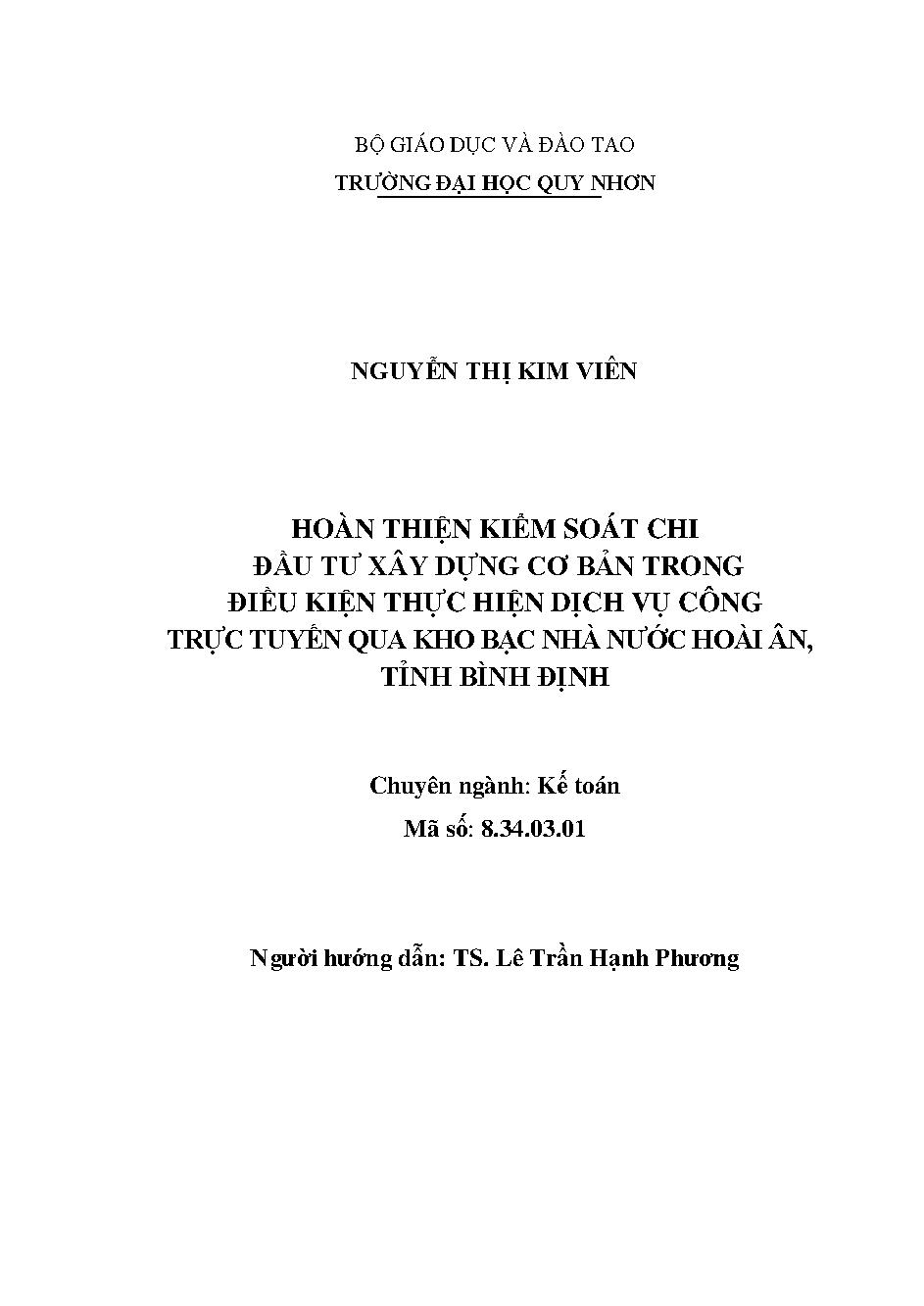 Hoàn thiện kiểm soát chi đầu tư xây dựng cơ bản trong điều kiện thực hiện dịch vụ công trực tuyến qua kho bạc nhà nước Hoài Ân, tỉnh Bình Định