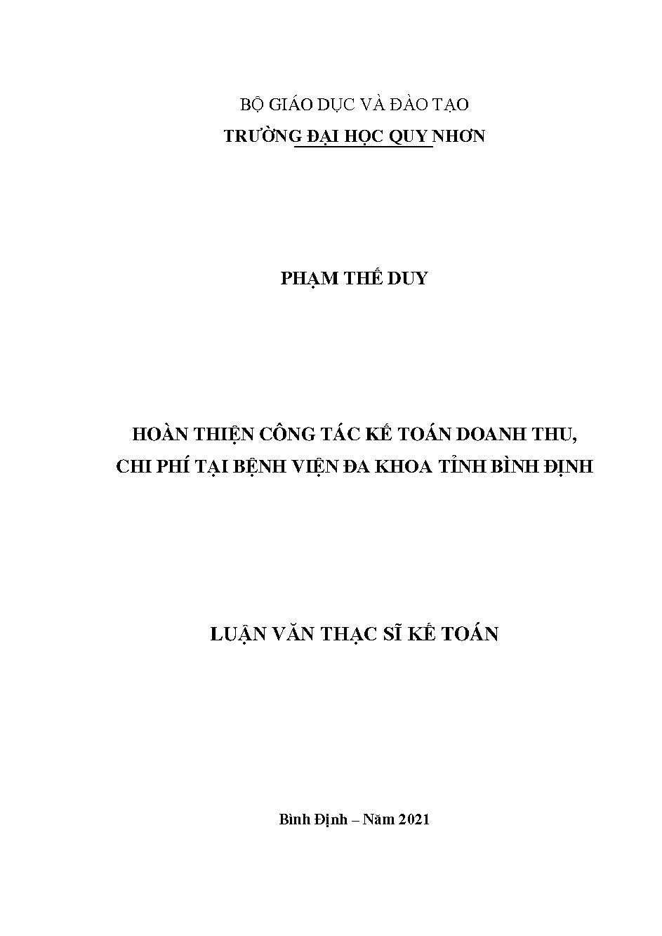 Hoàn thiện công tác kế toán doanh thu, chi phí tại Bệnh viện đa khoa tỉnh Bình Định