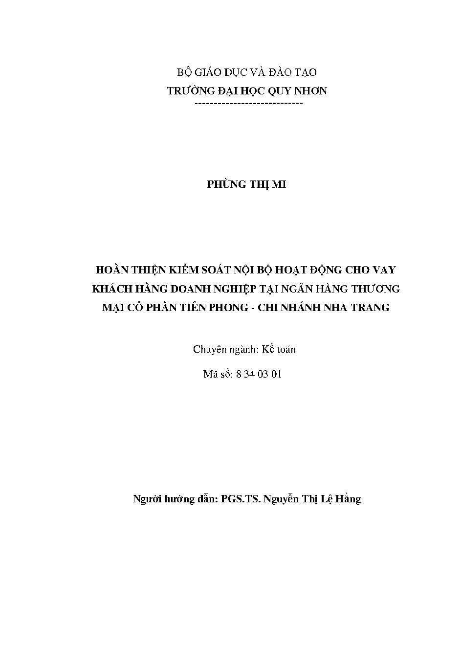 Hoàn thiện kiểm soát nội bộ hoạt động cho vay khách hàng doanh nghiệp tại ngân hàng Thương mại cổ phần Tiên Phong - Chi nhánh Nha Trang