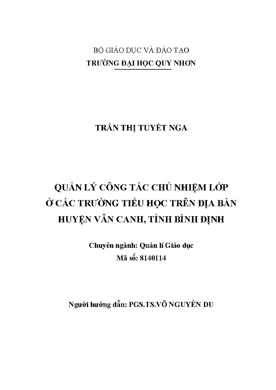Quản lý công tác chủ nhiệm lớp ở các trường tiểu học trên địa bàn huyện Vân Canh, tỉnh Bình Định