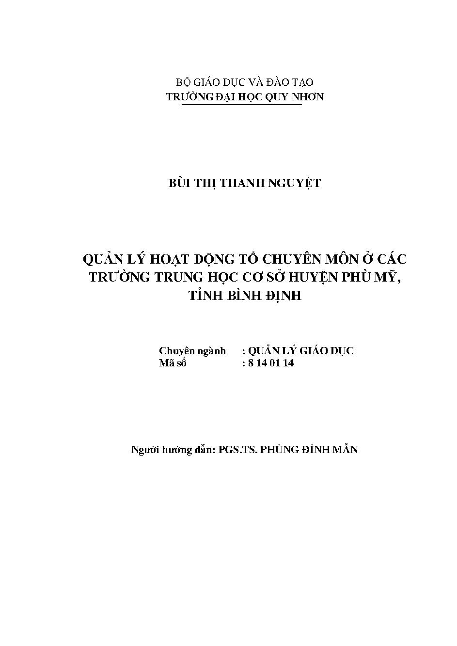 Quản lý hoạt động tổ chuyên môn ở các trường trung học cơ sở huyện Phù Mỹ, tỉnh Bình Định