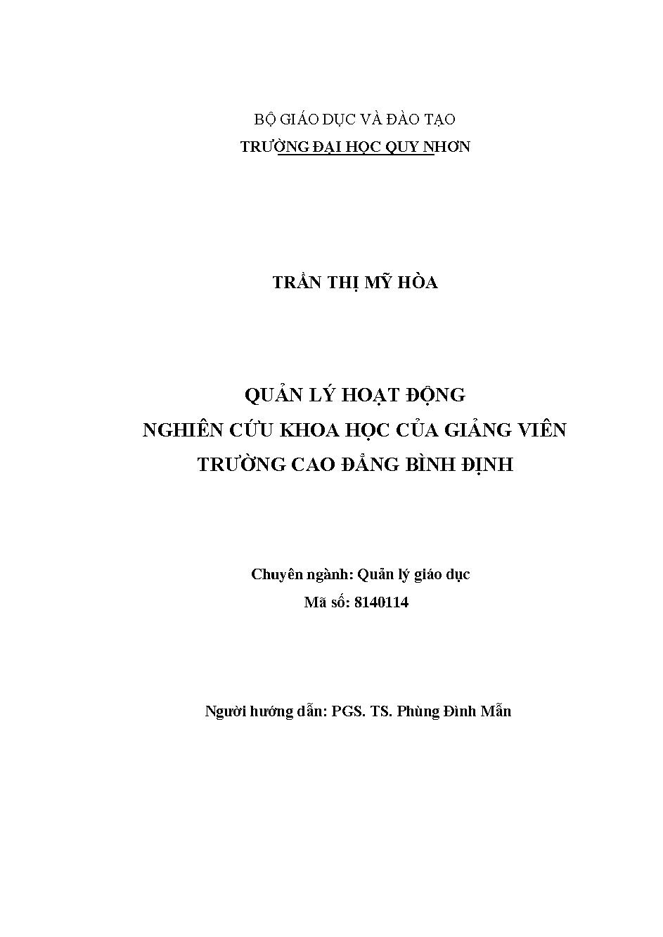 Quản lý hoạt động nghiên cứu khoa học của giảng viên Trường Cao đẳng Bình Định