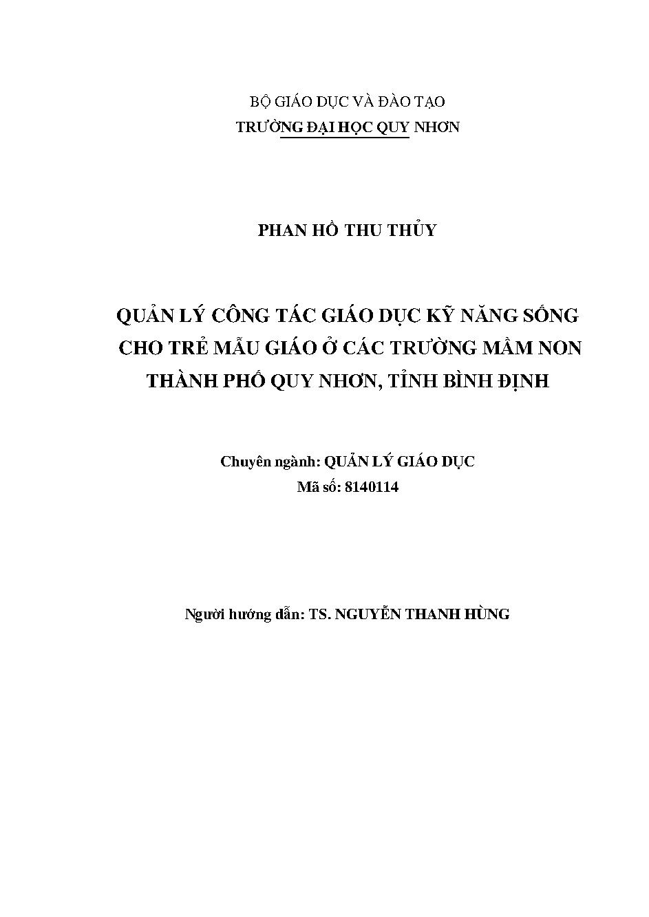 Quản lý công tác giáo dục kỹ năng sống cho trẻ mẫu giáo ở các trường mầm non thành phố Quy Nhơn, tỉnh Bình Định