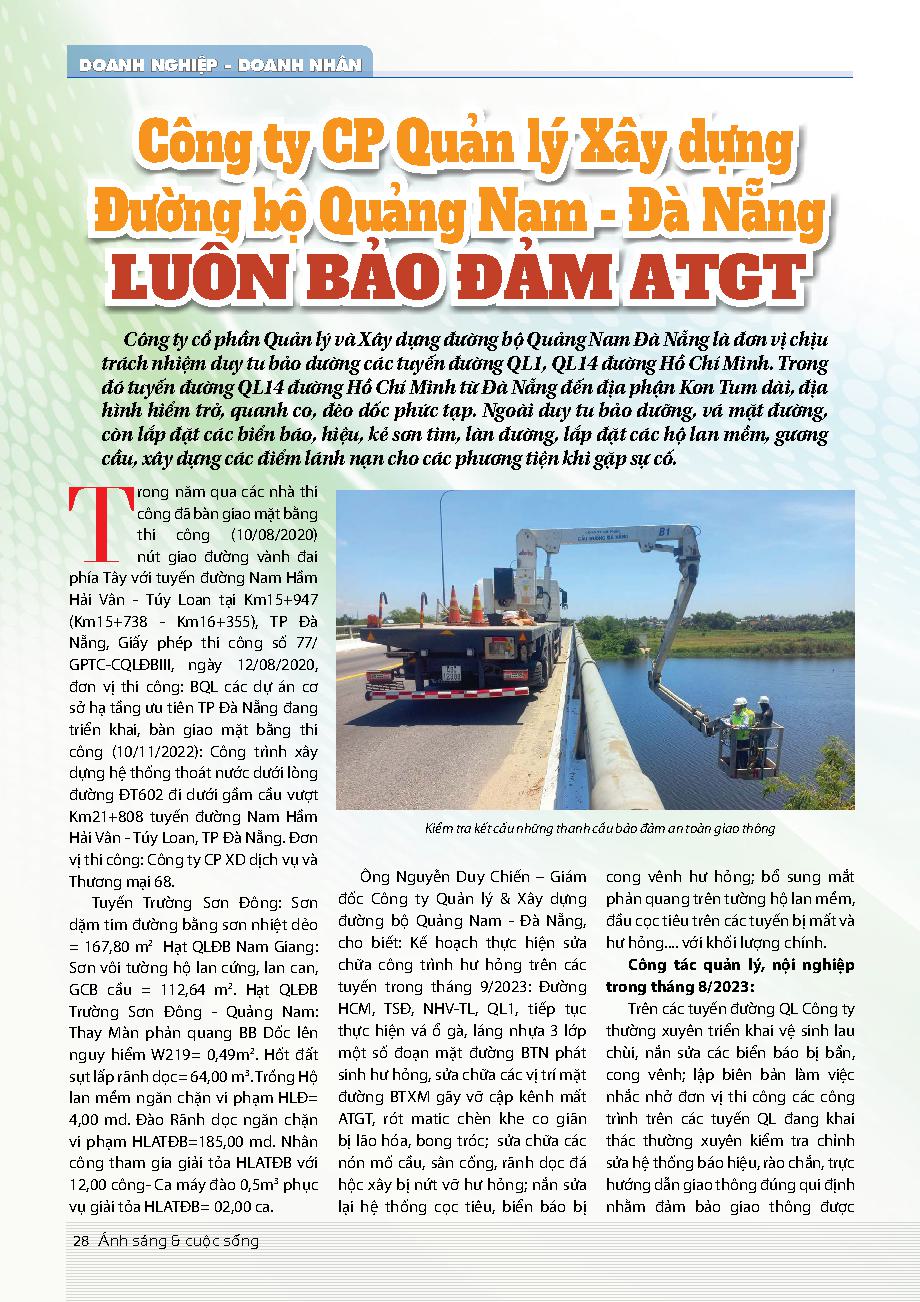 Công ty CP Quản lý Xây dựng Đường bộ Quảng Nam - Đà Nẵng luôn bảo đảm ATGT