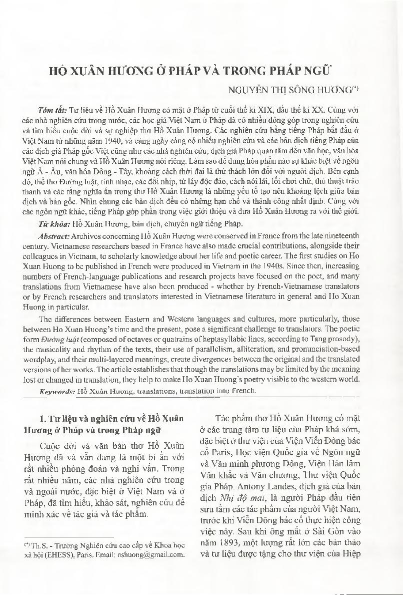 Hồ Xuân Hương ở Pháp và trong Pháp ngữ = Hồ Xuân Hương in France and in French language