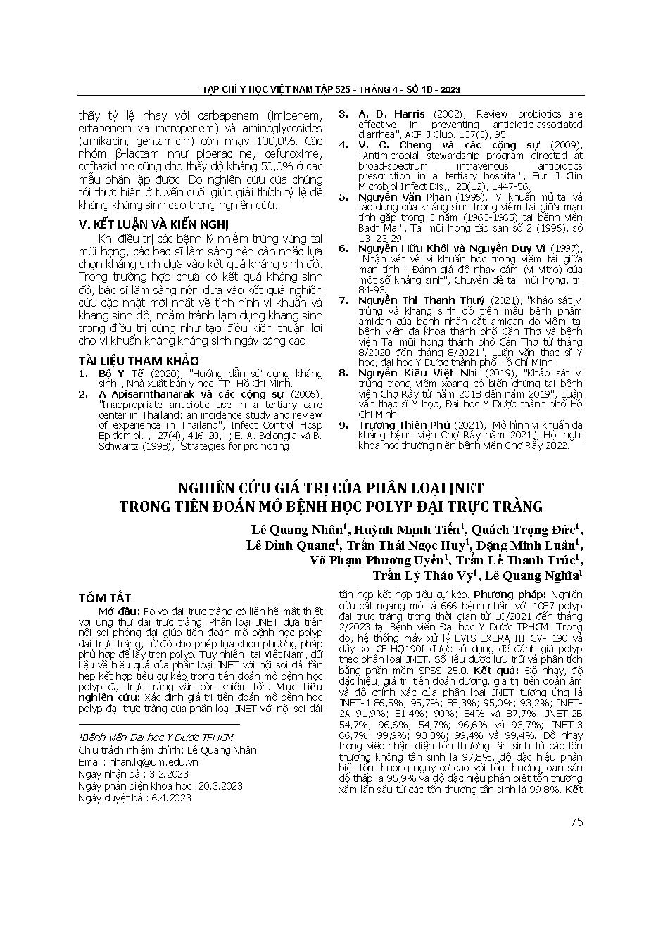 Nghiên cứu giá trị của phân loại JNET trong tiên đoán mô bệnh học polyp đại trực tràng = Diagnostic yield of JNET classification for predicting of colorectal polyp histopathology