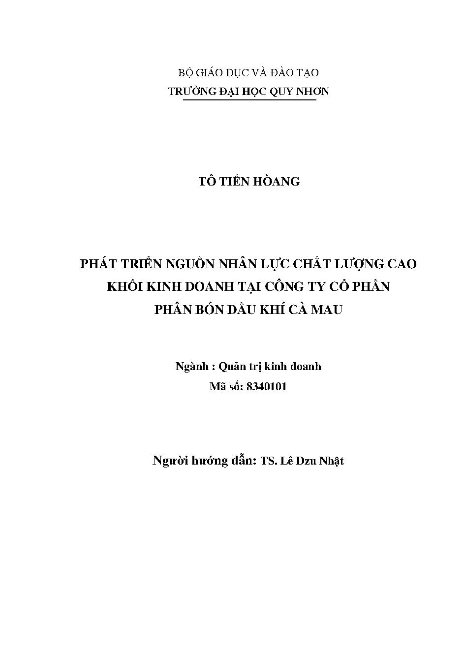 Phát triển nguồn nhân lực chất lượng cao khối kinh doanh tại công ty cổ phần phân bón dầu khí Cà Mau