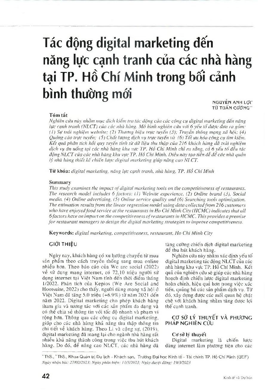 Tác động digital marketing đến năng lực cạnh tranh của các nhà hàng tại TP. Hồ Chí Minh trong bối cảnh bình thường mới