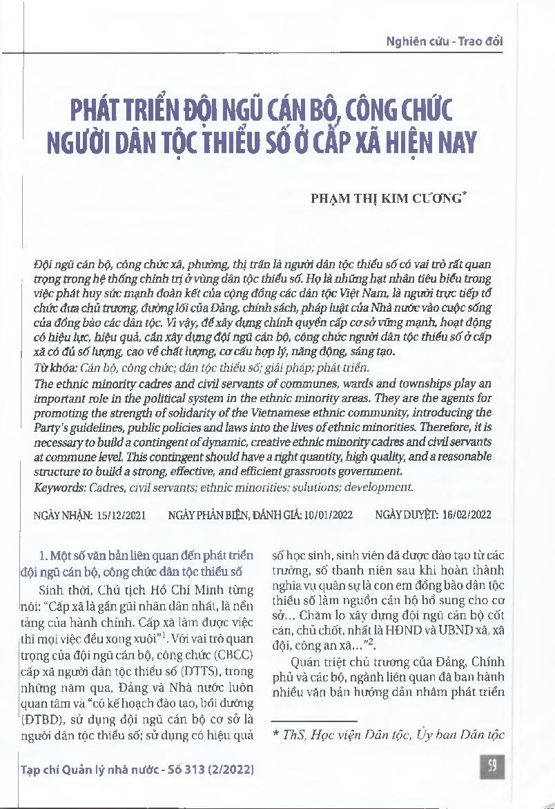 Phát triển đội ngũ cán bộ, công chức người dân tộc thiểu số ở cấp xã hiện nay = Developing the ethnic minority cadres and civil servants at the commune level at present