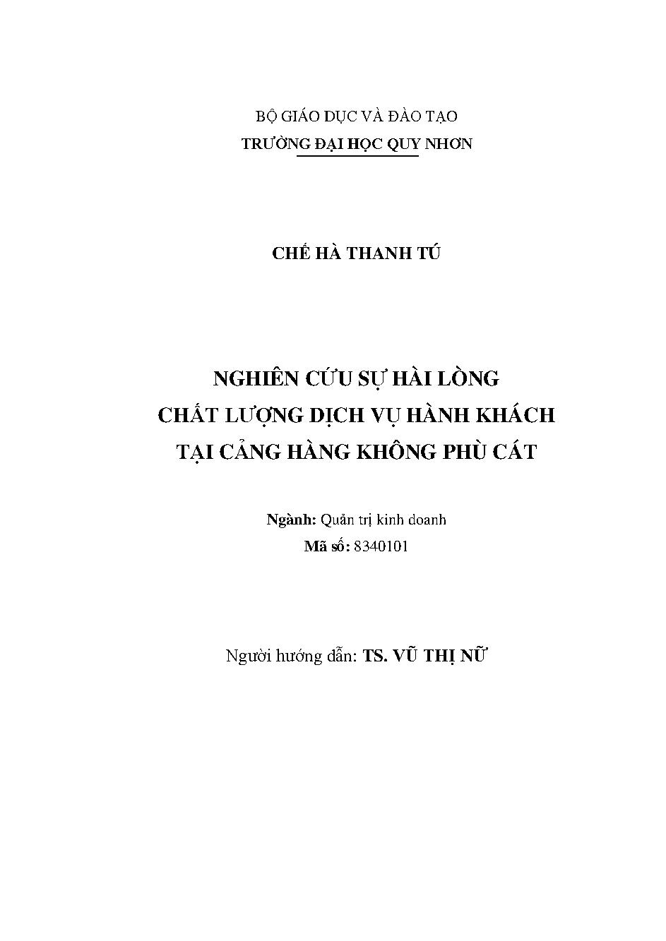Nghiên cứu sự hài lòng chất lượng dịch vụ hành khách tại cảng Hàng không Phù Cát